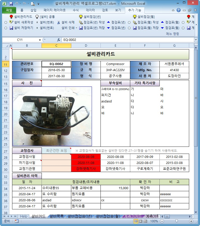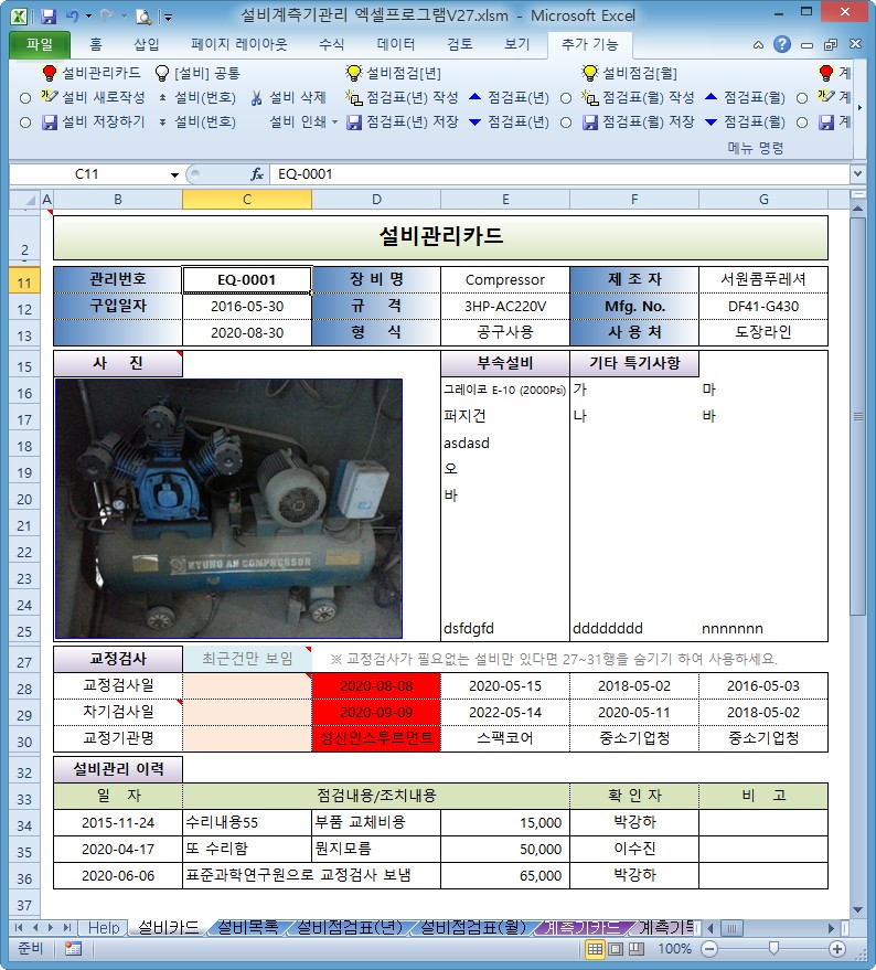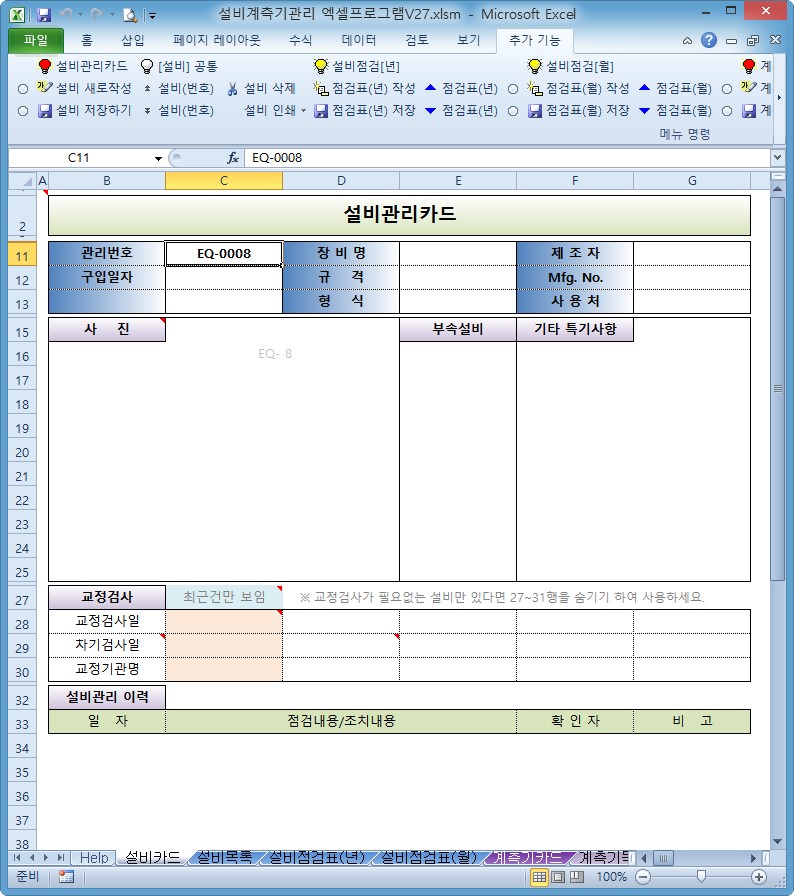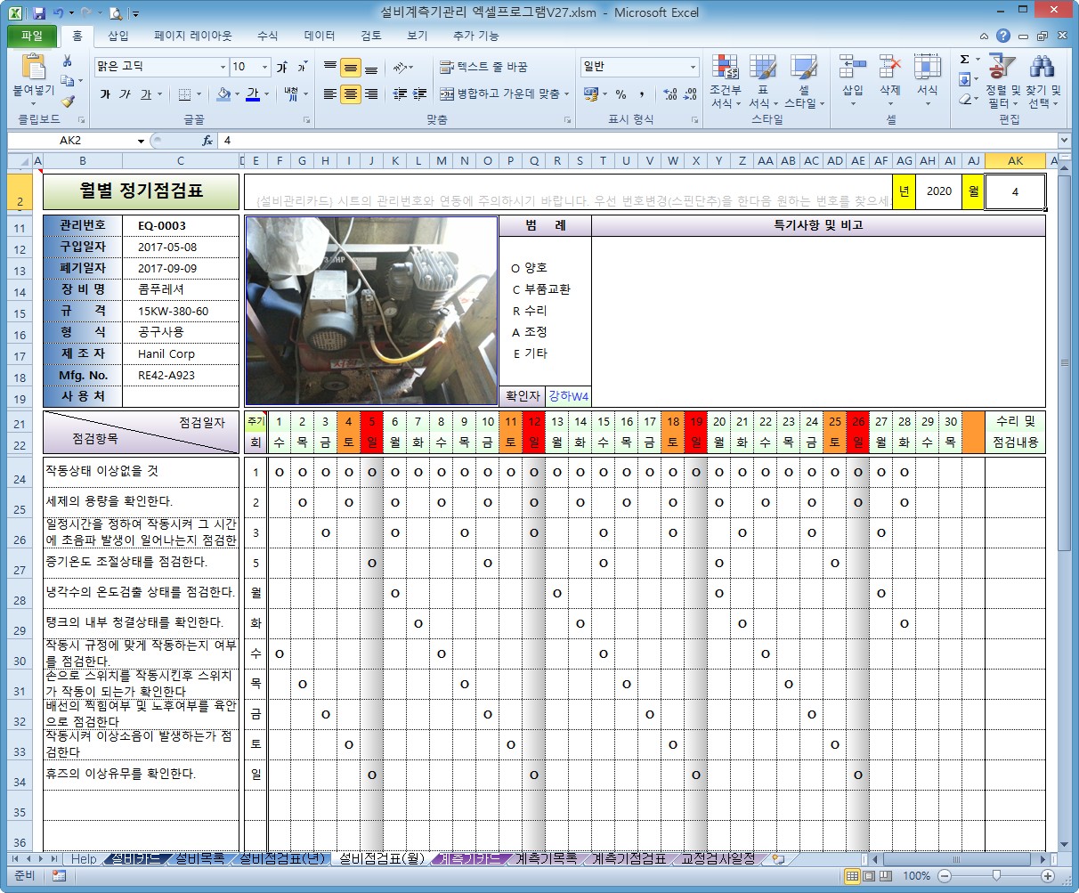 설비계측기관리 엑셀프로그램 V27