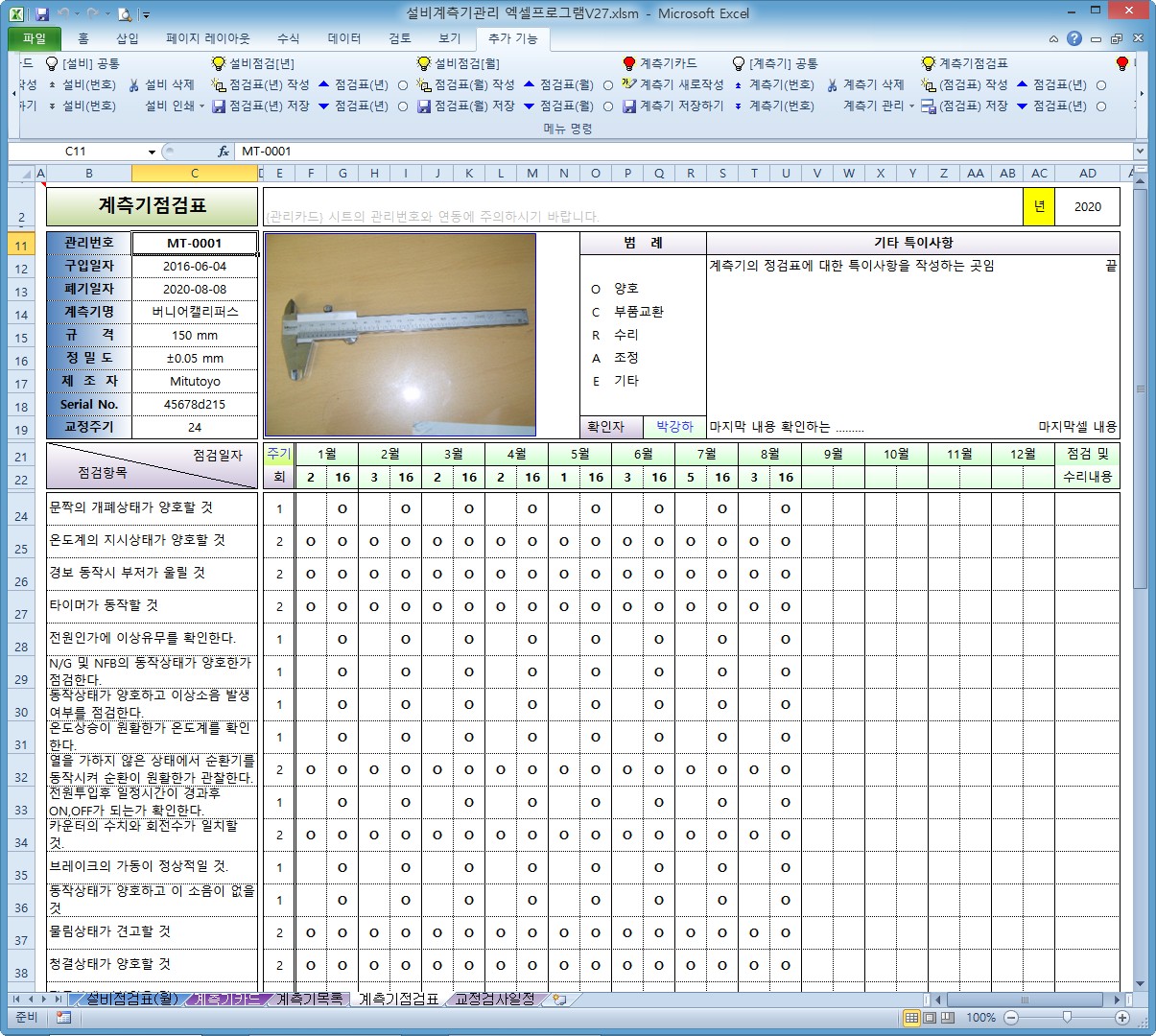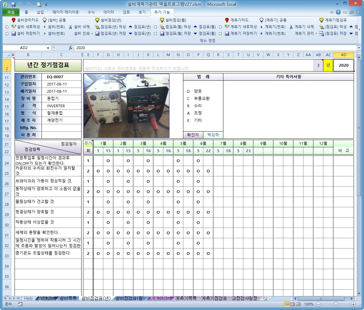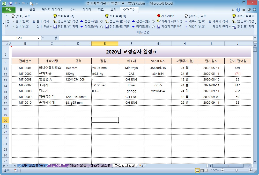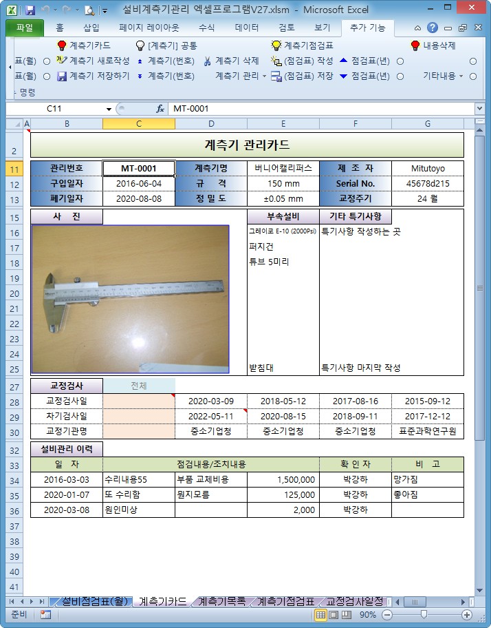 설비계측기관리 엑셀프로그램 V27